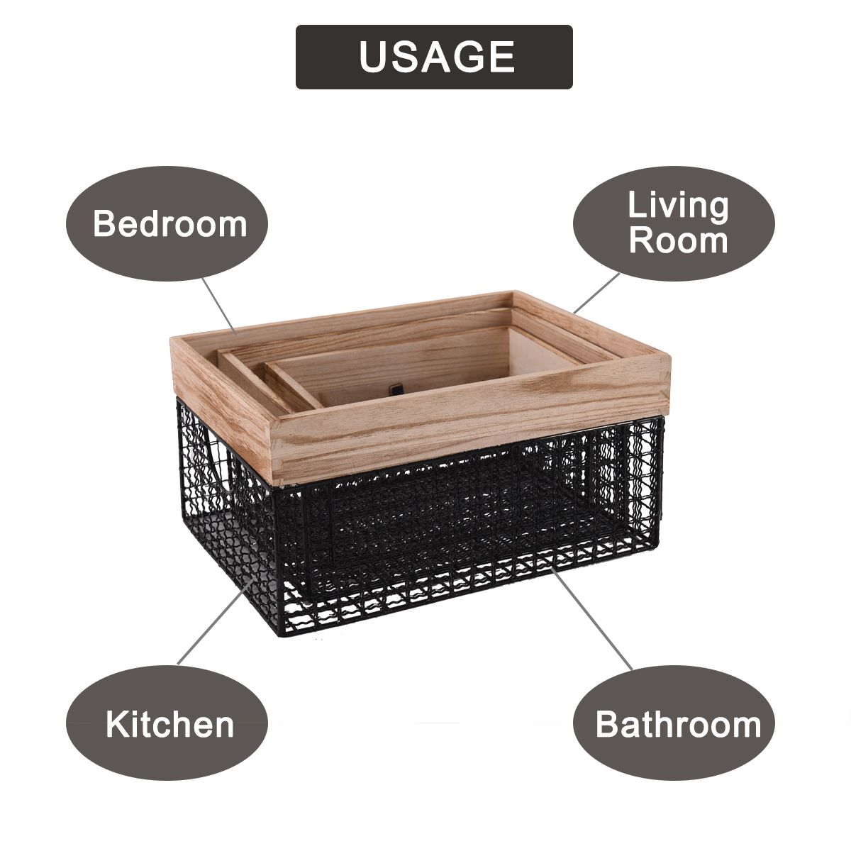 1.Decorative openwork metal baskets provide fabulous storage for every room in the house. Perfect for the kitchen to hold oils or in the pantry for storing packages, mason jars or canned goods. They're great for holding toys in the playroom and towels in the bathroom.